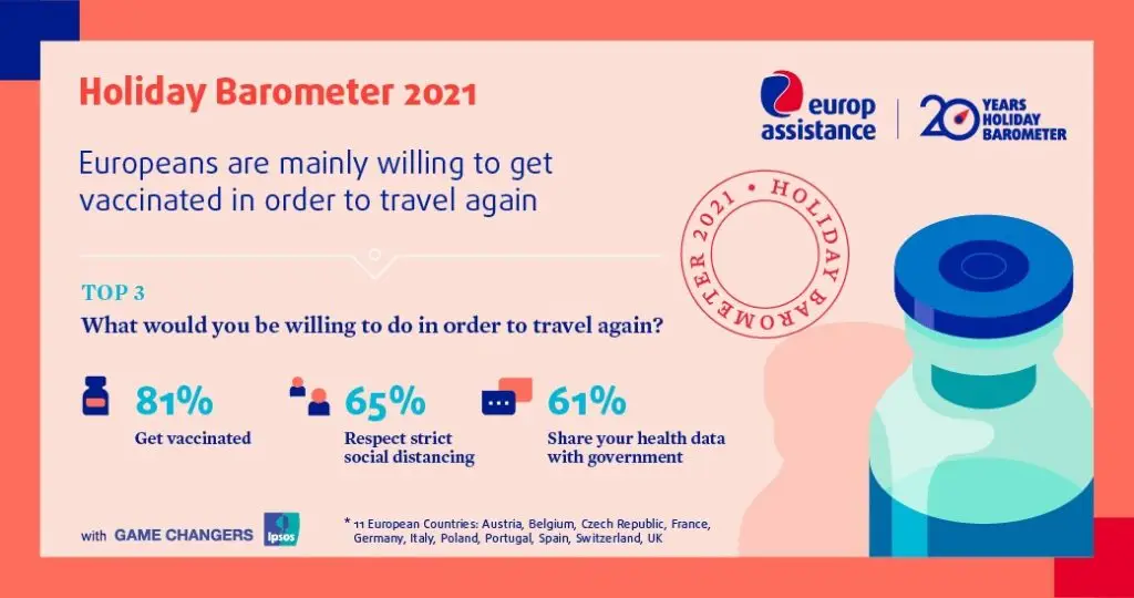 - Vaccines are not an obstacle to travel, as 81% of Europeans indicate that they are ready to get vaccinated in order to travel again.